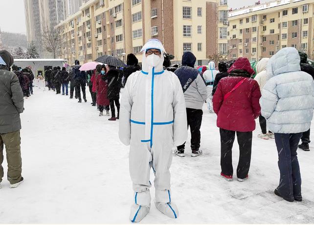 漫天風(fēng)雪,氣溫低至零下,依然擋不住廣大志愿者抗疫的腳步。11月30日以來,集團黨員干部職工全力以赴投身在抗疫第一線,在抗疫戰(zhàn)場上“連軸轉(zhuǎn)”。有的干部職工雖然不是黨員,卻在關(guān)鍵時刻沖鋒陷陣,第一時間到社區(qū)報到,支援抗疫工作。有的黨員從12月1日晚上8點就開始在社區(qū)卡口執(zhí)勤,一直干到次日凌晨1點,寒風(fēng)刺骨卻無怨無悔。有的黨員老公在單位值守,自己一個人在家照顧孩子,為了支援社區(qū)疫情防控,早上5點就把孩子叫醒讓對門鄰居幫忙照看,義
