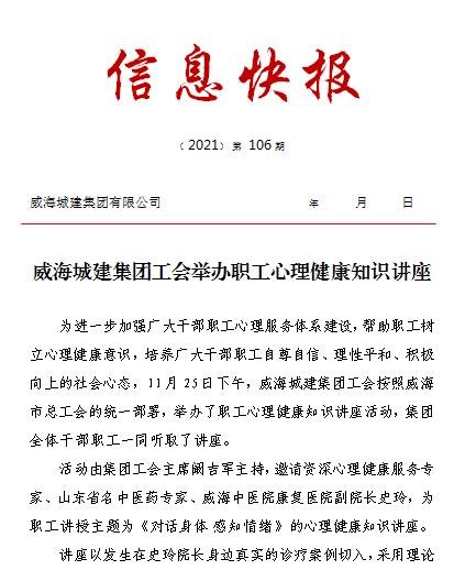 威海城建集團(tuán)工會舉辦職工心理健康知識講座