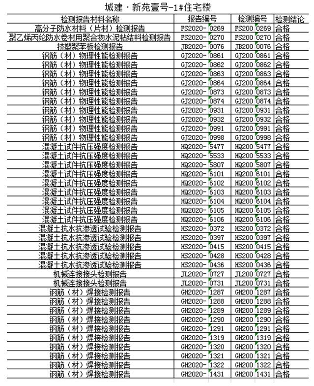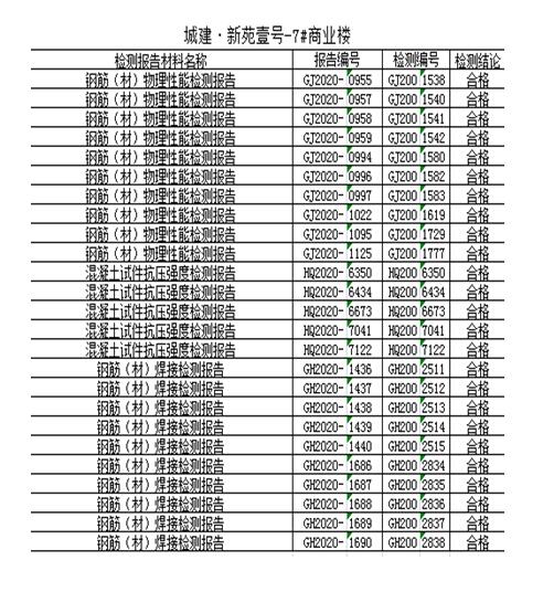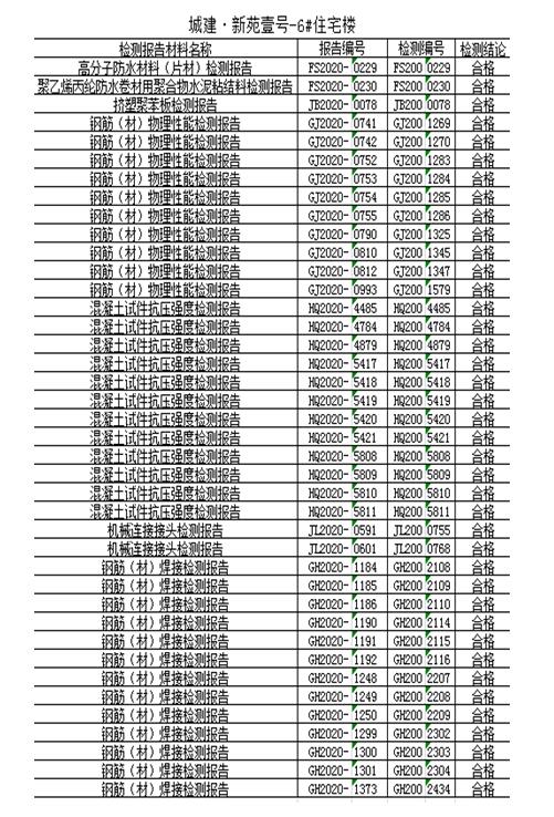 四、主體材料檢測(cè)信息: