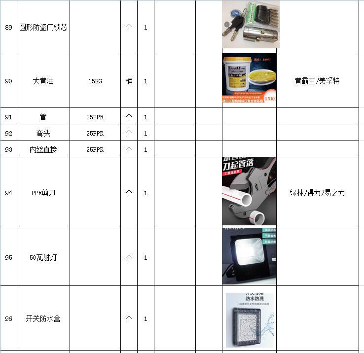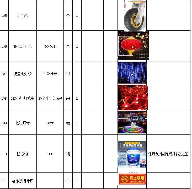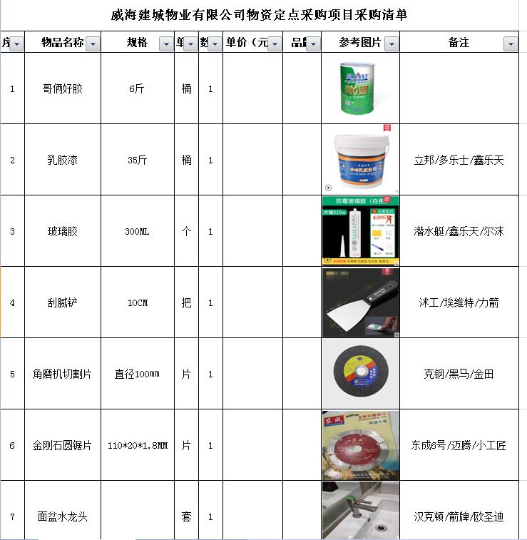 5)采購內(nèi)容:威海建城物業(yè)物資定點采購,主要包括五金、水暖管件、保潔、維修、綠化所需物資、應(yīng)急維修的其他物資等,采購清單詳見附件。