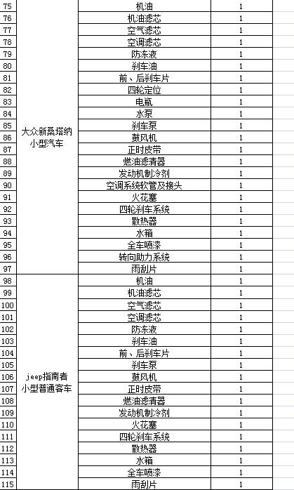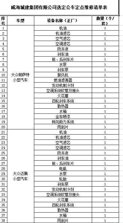 (4)采購內(nèi)容:威海城建集團10輛公車定點維修保養(yǎng)等服務內(nèi)容,采購清單詳見附件。