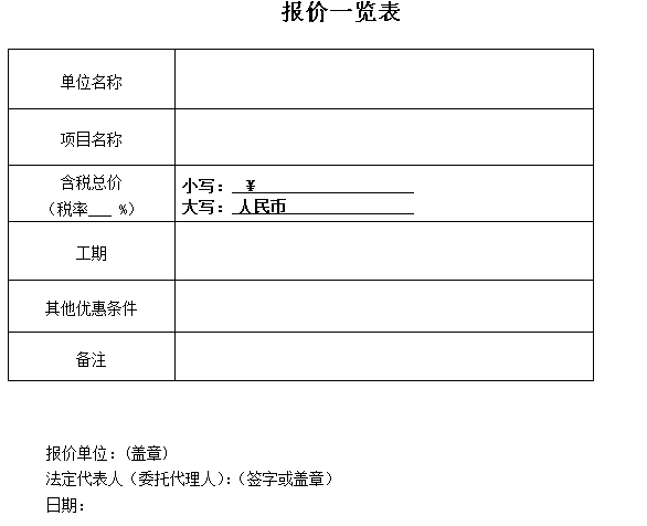 二、報(bào)價(jià)單位資格要求